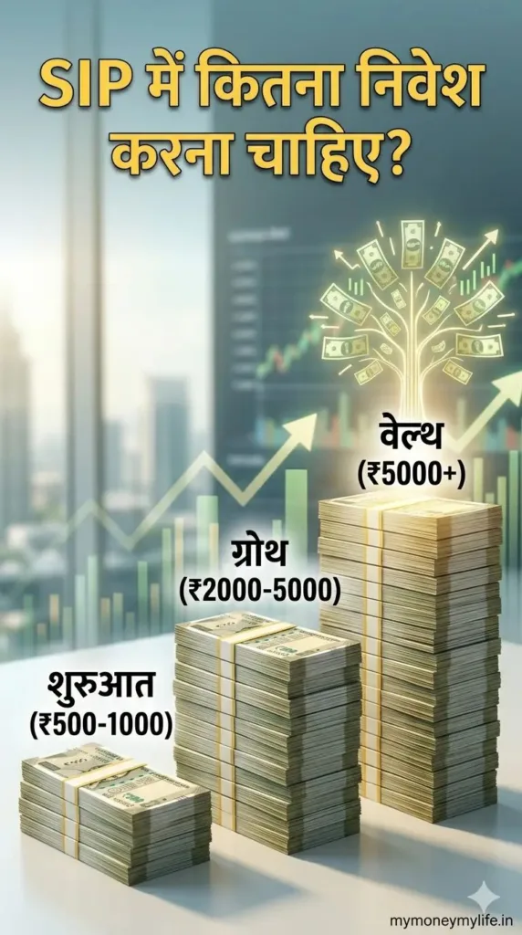 - ₹500 – ₹1,000: यह उन लोगों के लिए बेस्ट है जो बिल्कुल शुरुआत कर रहे हैं या अभी मार्केट को समझना चाहते हैं। छोटे अमाउंट से डर कम लगता है और अनुशासन (Discipline) बनता है।