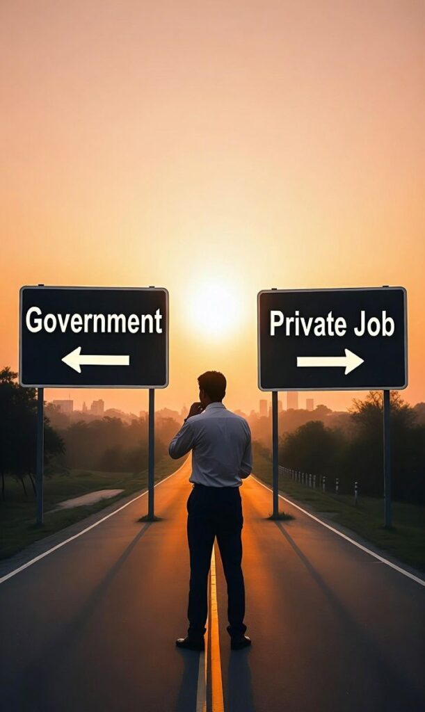 - स्थिरता बनाम अवसर: जहाँ Government Job सुरक्षित भविष्य और नियमित आमदनी सुनिश्चित करती है, वहीं Private Job अपनी बढ़त की क्षमता (Potential) के कारण आर्थिक रूप से आगे निकलने का मौका देती है।